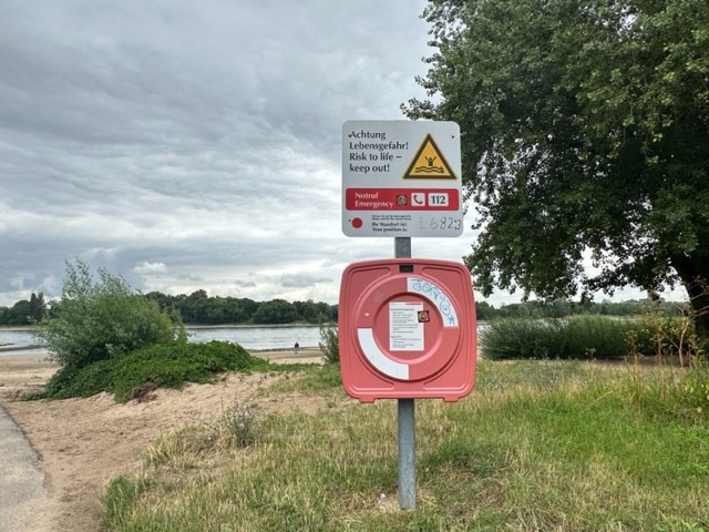 Und es kann natürlich Leben kosten. Es gab 2023 bisher 14 Einsätze mit dem Stichwort „Person im Rhein“, bei denen die Feuerwehr Hilfe geleistet hat. Die DLRG Bezirk Köln rät generell vom Schwimmen im Rhein ab. Im Notfall gibt es ganz klare Empfehlungen: Erst den Notruf absetzen, dann etwas zuwerfen. Grundsätzlich laufen die Einsätze über die Feuerwehr, die DLRG arbeitet grundsätzlich im Ehrenamtsbereich. Sollte tatsächlich einmal kein Rettungsring vorhanden sein, geht auch ein starker Ast oder etwas ähnliches, das für Auftrieb sorgt. Auf keinen Fall, so die Leiterin Öffentlichkeitsarbeit, sollte man hinterher springen. Für den betroffenen, unfreiwilligen Rheinschwimmer gilt: Mit dem Strom schwimmen, auf sich aufmerksam machen.