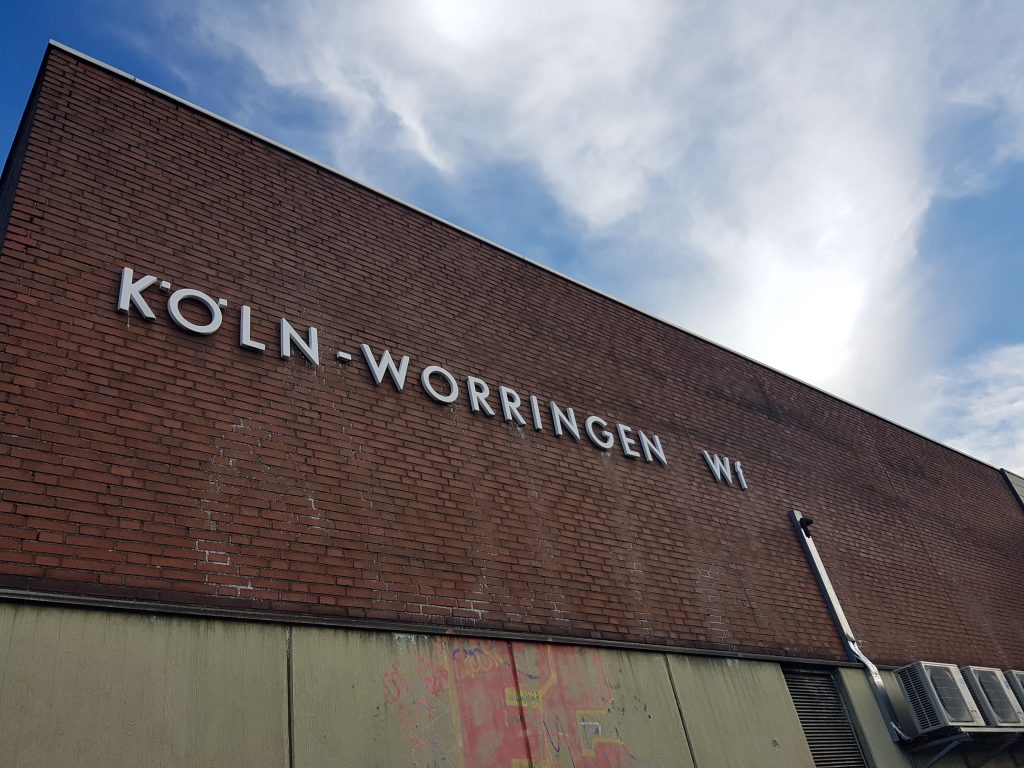 Die Halle liegt nur wenige Gehminuten vom Chlodwigplatz entfernt; Parkplätze für Fahrräder und Autos sind vorhanden.