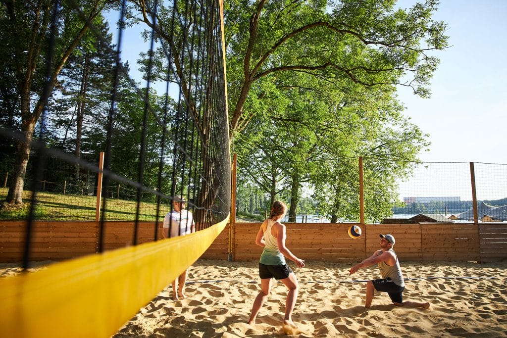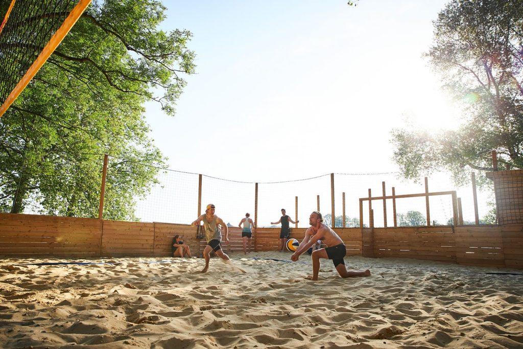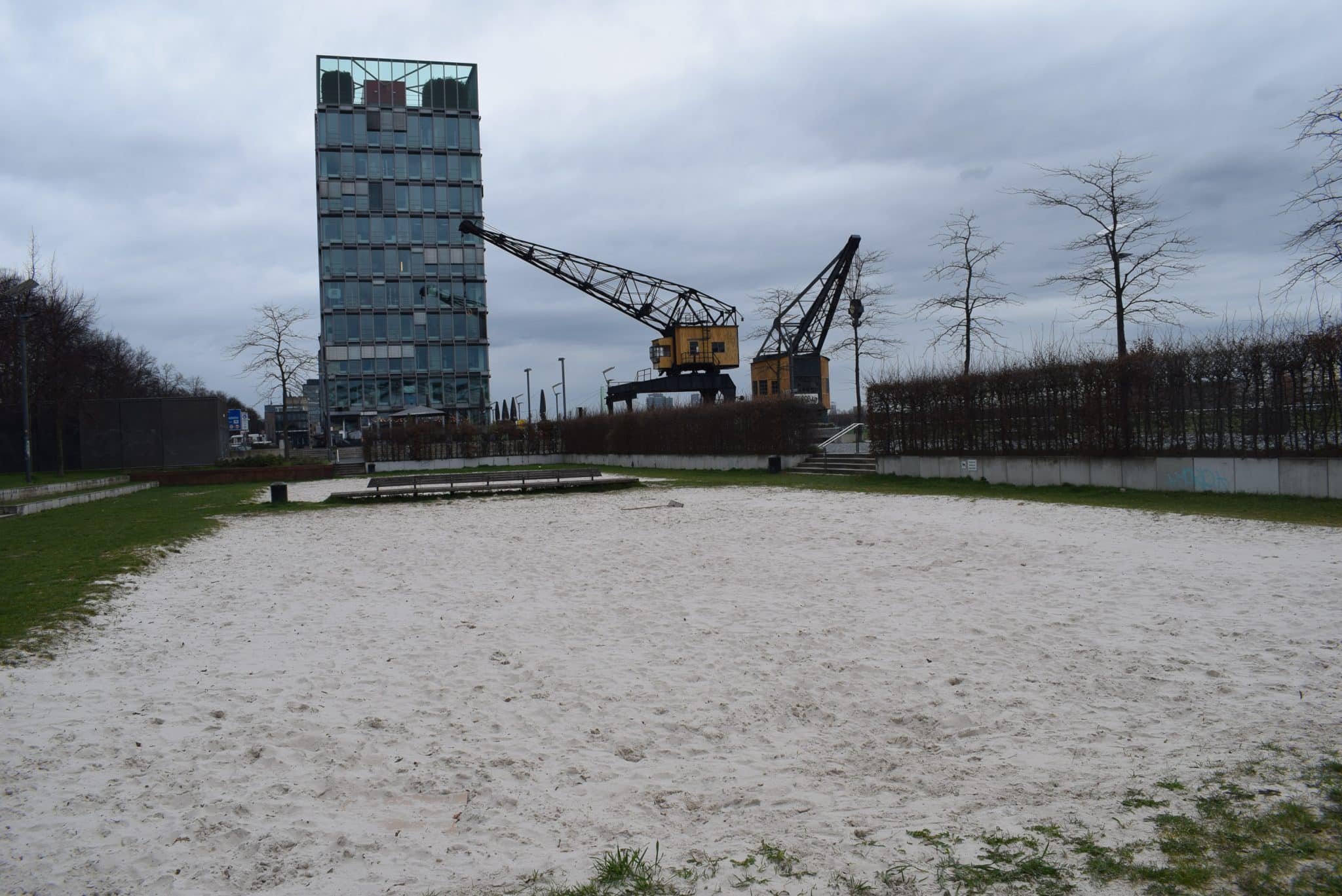 Hier warten inmitten moderner Architektur zwei hochwertige Beachvolleyballplätze auf ihre Nutzer. An schönen Tagen ist der Platz, der allerdings nicht über ein fest installiertes Netz verfügt (dieses bitte mitbringen!), stets gut besucht. Es macht auch überhaupt nichts, alleine die Anlage zu betreten, denn meistens dauert es nicht lange, bis sich eine Gelegenheit zum Mitspielen bietet. Somit finden also auch Alleingänger Platz für eine Partie in geselliger Runde.