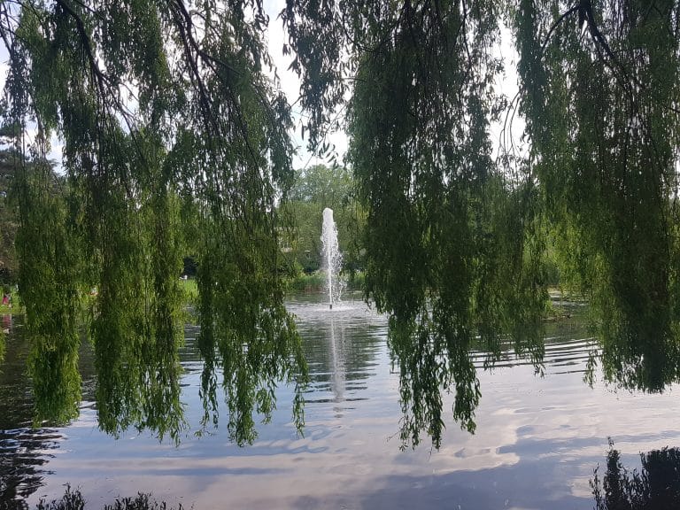 Gleich nebenan lädt dann der Stadtpark zu einem (anschließenden) Spaziergang ein. Neben Wiesen, die ein ausgedehntes Sonnenbad garantieren, genießen die Besucher insbesondere den Ausblick auf den Weiher mit seinem Springbrunnen, der häufig auch ein beliebtes Fotomotiv darstellt.