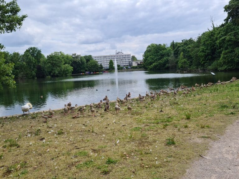 Wer seine Freizeit lieber in Parks und am Wasser verbringen möchte, kommt hier jedoch ebenfalls auf seine Kosten. So lädt der benachbarte Kahnweiher (auch „Stadtwaldweiher“ genannt) zu einer netten Auszeit auf einer Parkbank ein, von wo die Wasserspiele der Fontäne und auch das rege Treiben der am Ufer versammelten Enten und auch Schwänen beobachten werden können. Wer möchte, kann es sich auch auf einer Wiese gemütlich machen und hier bei einem Picknick eine herrliche Auszeit genießen.