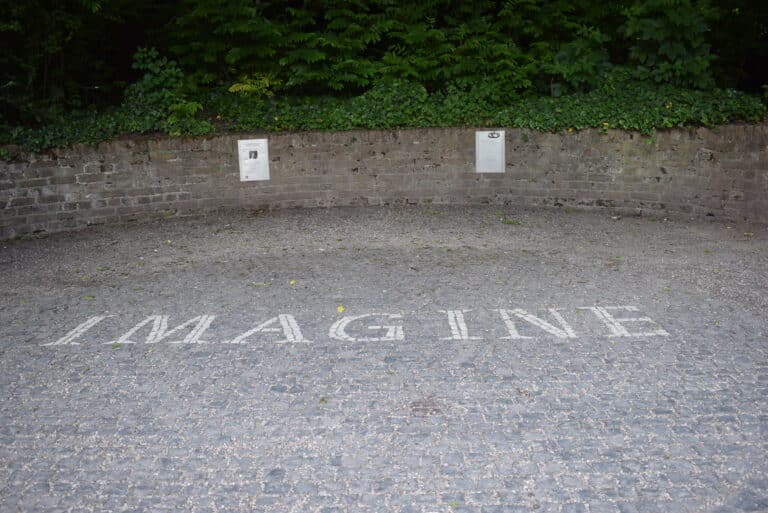 Das Fort I sowie der sich hier befindende Abenteuerspielplatz „Baui“ wurden ja bereits in der Vergangenheit auf unserer Webseite vorgestellt und porträtiert. Es existiert jedoch noch eine weitere schöne wie interessante Örtlichkeit unmittelbar am historischen Baudenkmal und im Friedenspark. Dort, zwischen der Adlersäule und der Agrippastraße, finden Besucher das Denkmal für die Friedenshymne „Imagine“ des Ex-Beatles-Musikers John Lennon, das im Oktober 2012 nach nur einjähriger Bauzeit (und das in Köln!!) eröffnet wurde. Es besteht aus grauen, einen rund vier Meter Durchmesser aufweisenden Kreis aus Basaltsteinen, die mittig das Wort „Imagine“ bilden. Drei Hinweistafeln mit Informationen zu John Lennon und seinem Song runden das offiziell „Imagine-Circle“ genannte Denkmal ab, das umgangssprachlich auch einfach als „John-Lennon-Platz“ vielen Kölnern, die sich hier gerne zum Boule-Spielen treffen, bekannt ist. Der Platz entstand auf Initiative des Lennon-Fans Maitre Sardou nach Vorbild des „Imagine“-Denkmals im New Yorker Central Park und wurde durch drei Auszubildende unter Leitung des städtischen Gartenbauingenieurs Werner Becker realisiert.