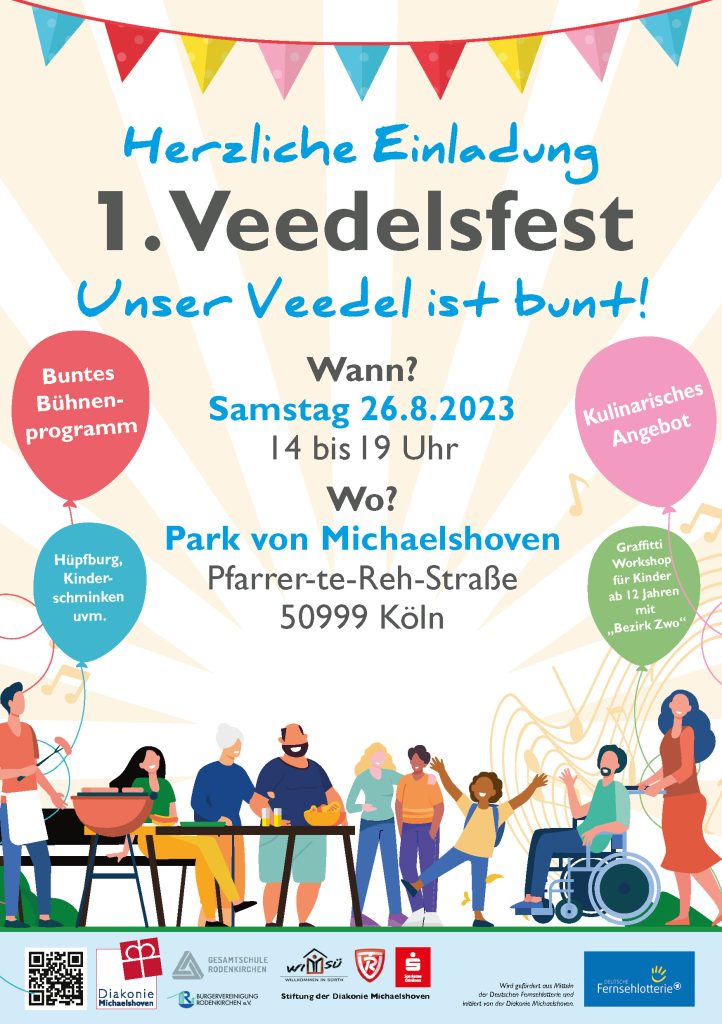Die Gesamtschule Rodenkirchen, Bürgervereinigung Rodenkirchen, WISÜ, TV Rodenkirchen und die Diakonie Michaelshoven haben sich zusammengetan und laden Sie herzlich zum 1. Veedelsfest in Michaelshoven ein. Das Motto lautet: Unser Veedel ist bunt!“