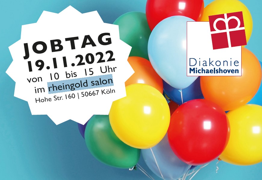 Wer sich für eine Arbeitsstelle oder eine Ausbildung im sozialen und pflegerischen Bereich interessiert, kann sich beim Jobtag der Diakonie Michaelshoven am 19.11. von 10 bis 15 Uhr informieren. Im rheingold salon, Hohe Str. 160 in der Kölner Innenstadt stehen Mitarbeitende aus den verschiedenen Bereichen für Fragen zur Verfügung und es kann ein Jobprofil erstellt werden. Eine direkte Bewerbung ist vor Ort möglich. Die Diakonie Michaelshoven ist der größte diakonische Träger in Köln und Umgebung. Weitere Informationen finden sich auf www.diakonie-michaelshoven.de