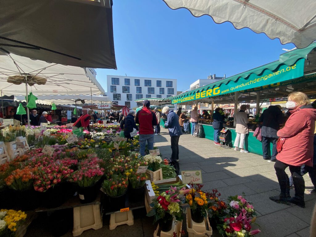 Ein reichhaltiges Angebot bietet der Wochenmarkt auf dem Maternusplatz jeden Mittwoch zwischen 7 und 13 Uhr. Neben Obst und Gemüse, Kartoffeln, Fisch, Fleisch und Geflügel, Blumen und diversen Textilverkäufern ist mittwochs besonders der Reibekuchenstand kein Geheimtipp mehr. Gerade jetzt im Frühling dauert ein Plausch mit den Marktbeschickern auch gerne länger als gedacht. Bringt Zeit mit und plant einen leckeren Kaffee mit ein. Direkt auf dem Maternusplatz mit einer frischen Waffel, nur als Beispiel.