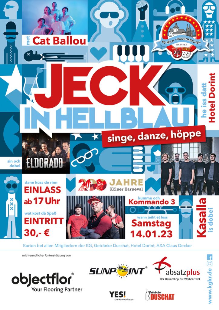Die KG Köln-Rodenkirchen präsentiert zum 200jährigen Jubiläum des Kölner Karnevals Ihre neue Veranstaltung – JECK IN HELLBLAU