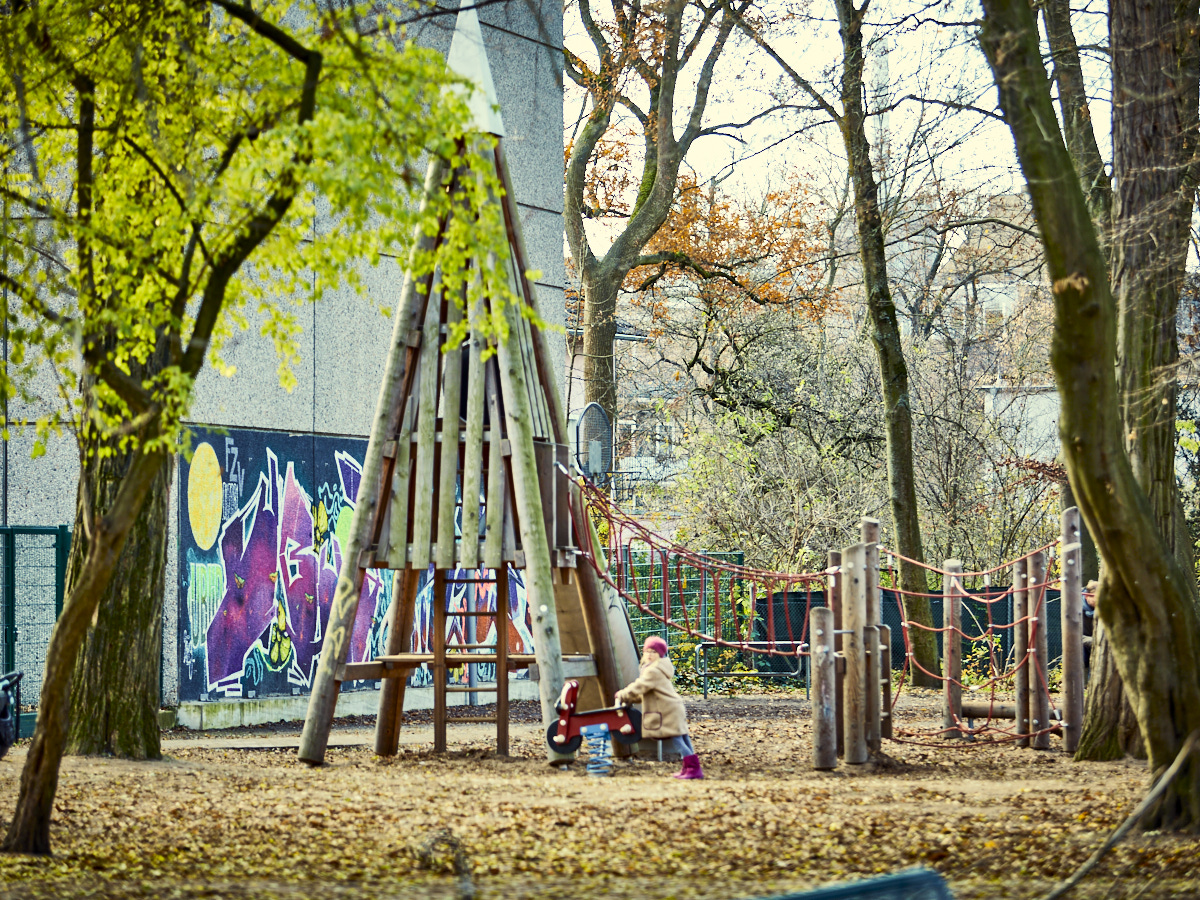 Der beliebte Spielplatz liegt in direkter Nähe des Lindenthaler Tierparks, ein Ausflug hier hin lässt sich also großartig kombinieren. Er ist sehr gepflegt und ausgestattet mit genug Platz zum Sandburgen bauen, mit Kletter- und Spielhäusern, mit Rutschen, einem großen Kletternetz und verschiedenen Schaukeln. Da er mitten im Stadtwald umgeben von altem Baumbestand liegt, hat man immer schützenden Schatten, was ihn vor allem in den Sommermonaten zu einem sehr gefragten Spielplatz macht. Dementsprechend kann es hier auch mal voller werden – doch dank seiner Großzügigkeit findet hier jeder ein Plätzchen zum Spielen.