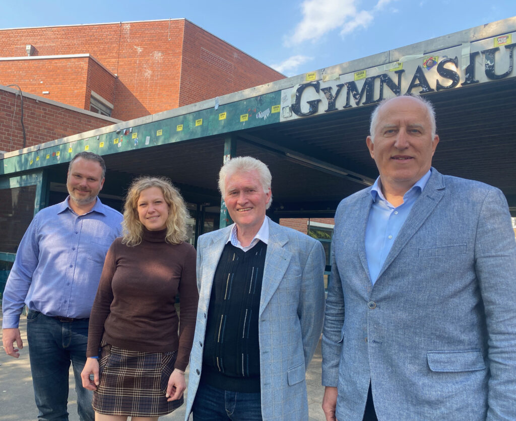 Sie verstehen sich als Team und agieren so. Bezirksbürgermeister Manfred Giesen (Bündnis 90/Die Grünen 3. von links) freut sich mit seiner ersten Stellvertreterin Elisabeth Sandow (SPD), seinem zweiten Stellvertreter Achim Görtz (CDU) (rechts) und seinem dritten Stellvertreter Karl Wolters (FDP) (links) auf den Dialog mit Bürgern.