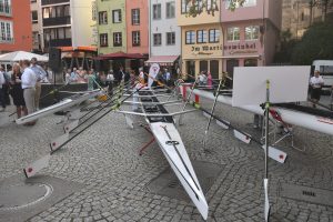 In einer freundlichen Vorstellungsrunde berichten Pia Otto und Robin Goeritz aus ihrem spannungsreichen sportlichen Leben und über ihre aktuelle Situation als Studierende der Mathematik bzw. der Juristerei. Eine solide Berufsausbildung ist ihnen wichtig. Ihr gleichfalls sieggewohnter Mitruderer Maxime Wülfrath tauft danach einen Rennvierer auf den Namen „Executor“, Aaron My als frischgebackener Goldjunge einen Renneiner auf den Namen „Themse“. Ein Gewässer, auf dem traditionell einige der großartigsten Ruderregatten stattfinden – die Teilnahme ein Traum jedes Aktiven.