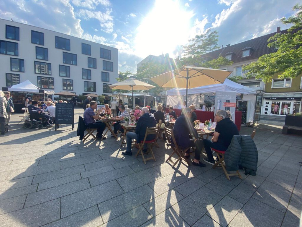 Was machen wir am liebsten an einem lauschigen Sommerabend? Chillen und Schlemmen – und das mitten auf unserer Schaltzentrale, dem Maternusplatz. Am letzten Dienstag eines jeden Monats stehen gut gekühlte Getränke, wie Wein, Bier oder Longdrinks zur Auswahl, dazu Schlemmereien aus ganz Europa, um den verwöhnten Gaumen zu befriedigen. Die Idee der Aktionsgemeinschaft Rodenkirchen, feierte eine ordentliche Premiere – und dazu lachte auch noch die Sonne vom Himmel. Wir sind begeistert, zusammen zu sitzen, zu klönen und zu chillen.