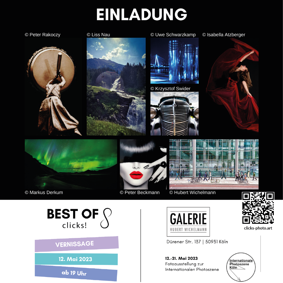 Galerie Hubert Wichelmann Dürener Str. 137, Köln„Best-of-8“ Acht Kölner Fotograf:innen zeigen ihre jeweils besten Werke. Im Rahmen der Photoszene 2023 ist die Kölner Foto-Gruppe Clicks! wieder dabei und zeigt in einer kleinen aber feinen Ausstellung (Galerie ‘Wichelmann‘, Dürener Straße 137) ein photographisches Crossover, ein spannendes Potpourri verschiedenster Inhalte, Konzepte, Zugänge und Authentizitäten. Clicks! – das sind Isabella Atzberger, Peter Beckmann, Markus […]