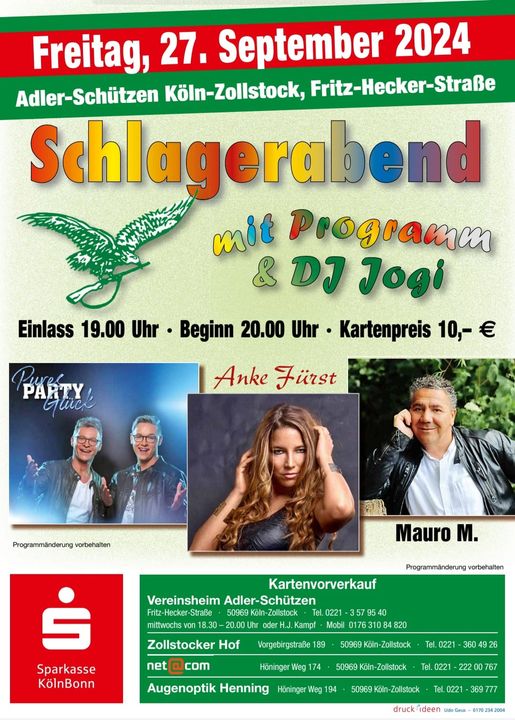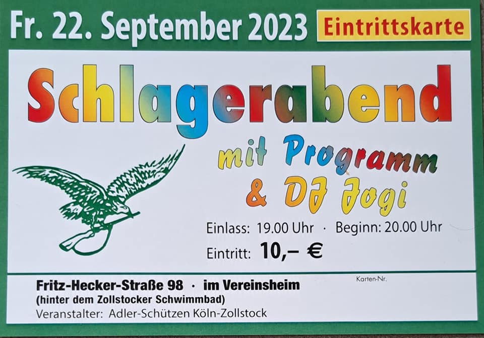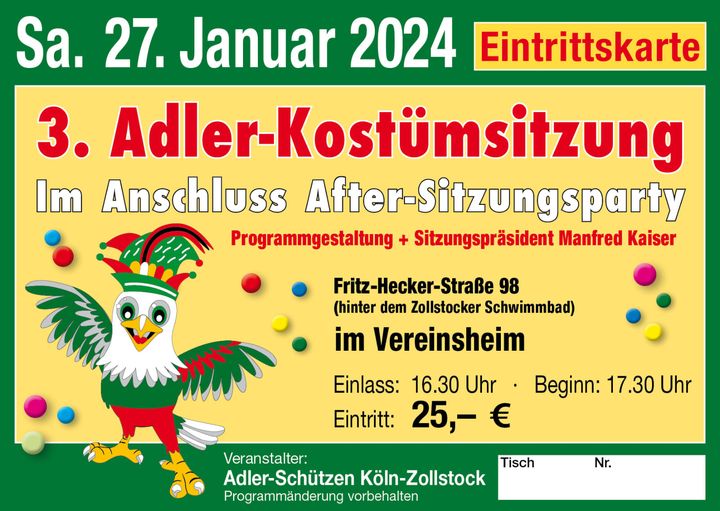 Karnevalssitzung der Adler Schützen Zollstock - Vorverkauf beginnt Die Eintrittskarten für die Karnevalssitzung der Adler Schützen Köln Zollstock am 27. Januar, sind bereits verfügbar. Die Karten können ab dem 4.10.im Vereinsheim an der Fritz-Hecker-Straße und im Zollstocker Hof, und bei Igor Schröder in der Filiale net@com am Höninger Weg ab 9.10. zum Pries von 25 […]
